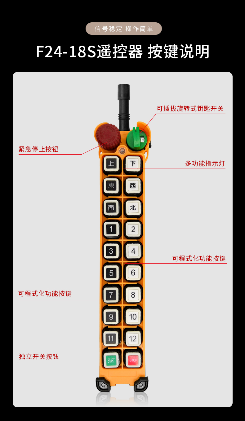 產(chǎn)品廣泛應(yīng)用于機(jī)械、建筑、冶金、汽車、化工、鐵路、施工等可實(shí)現(xiàn)遙控操作的設(shè)備及場(chǎng)所。