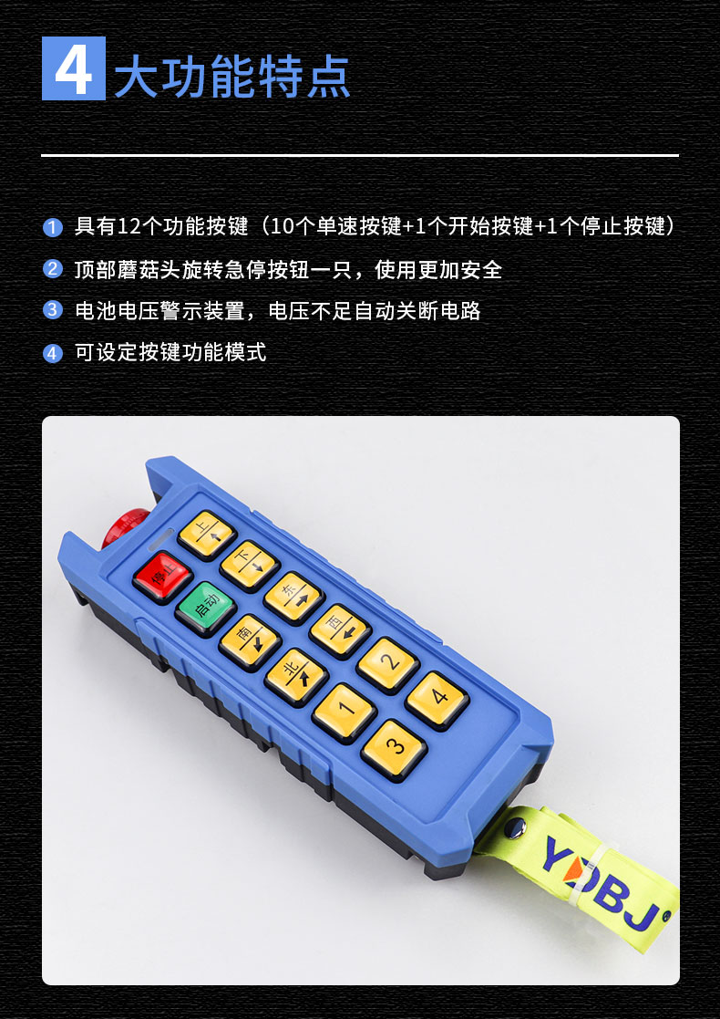 產(chǎn)品廣泛應(yīng)用于機(jī)械、建筑、冶金、汽車、化工、鐵路、施工等可實(shí)現(xiàn)遙控操作的設(shè)備及場(chǎng)所。