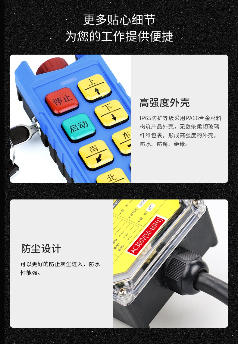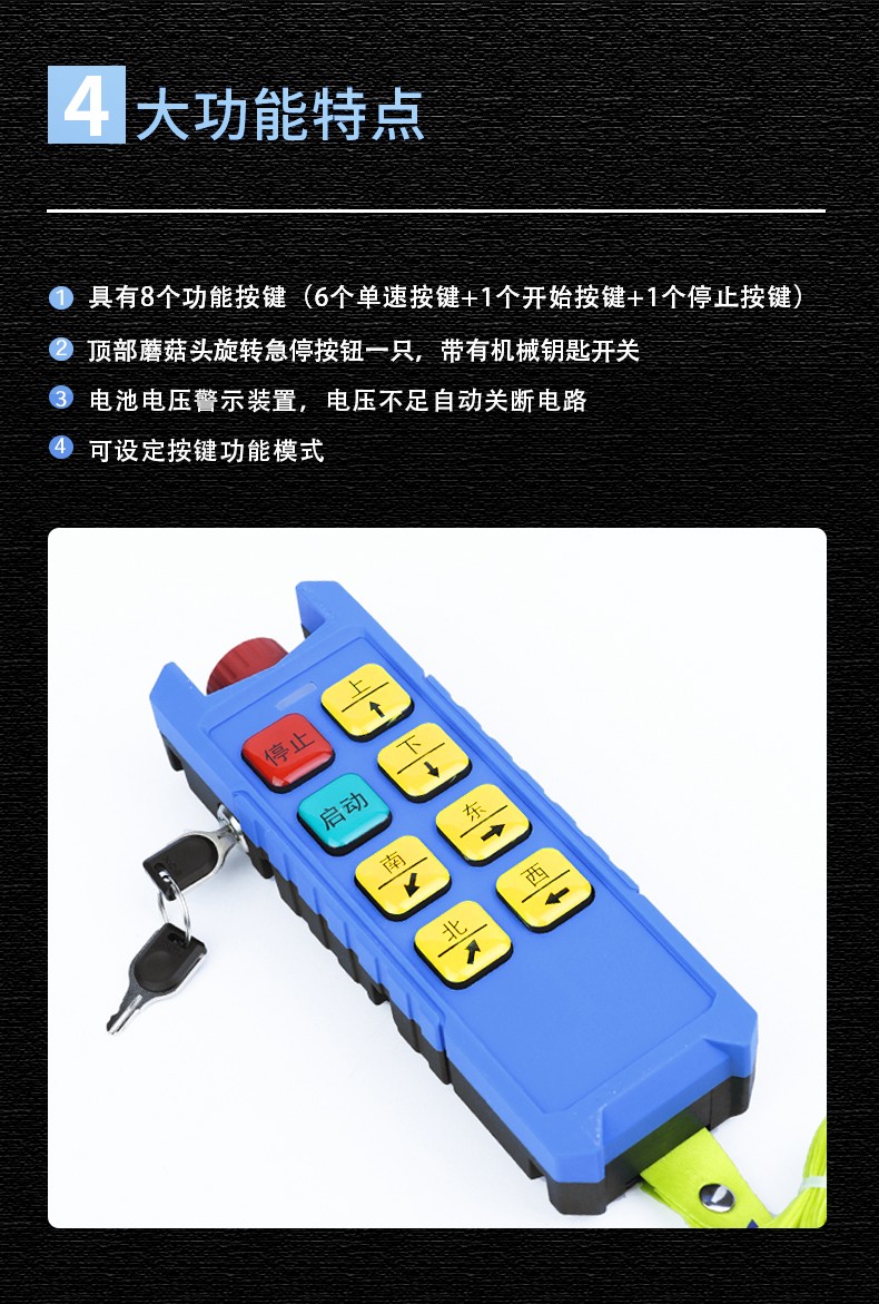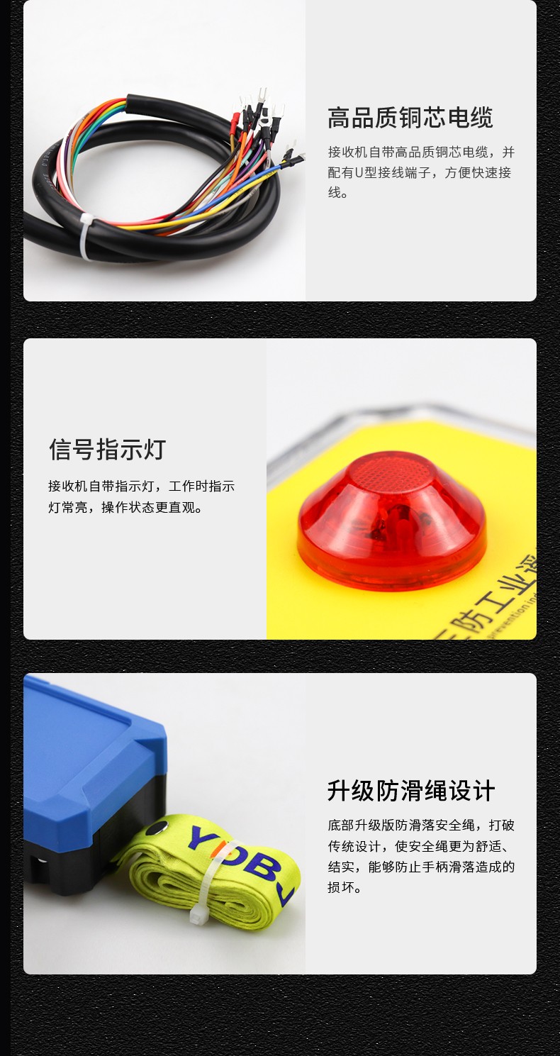 產(chǎn)品廣泛應(yīng)用于機(jī)械、建筑、冶金、汽車(chē)、化工、鐵路、施工等可實(shí)現(xiàn)遙控操作的設(shè)備及場(chǎng)所。